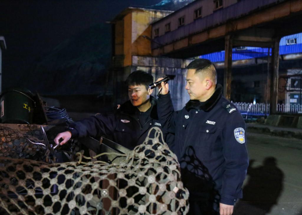 坐標:供應銷售部西側,除夕夜23點31分,兩名物業公司治保隊員進行夜間安全巡邏。