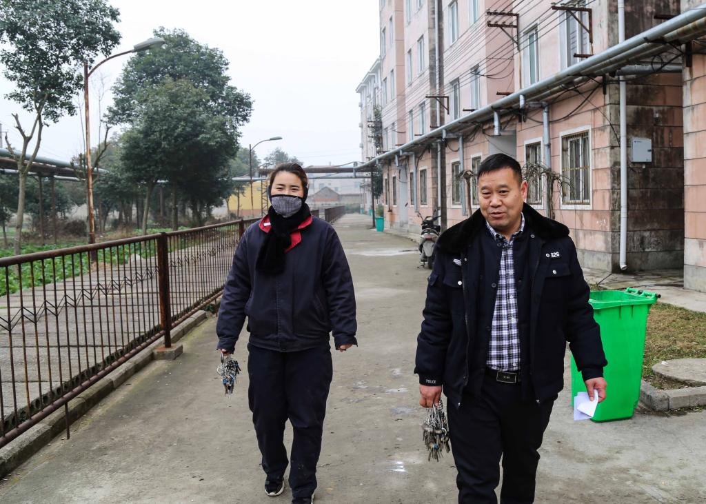坐標:工人村,農歷年三十下午16點30分,兩名物業公司留勤職工結束最后一棟職工宿舍巡查。
