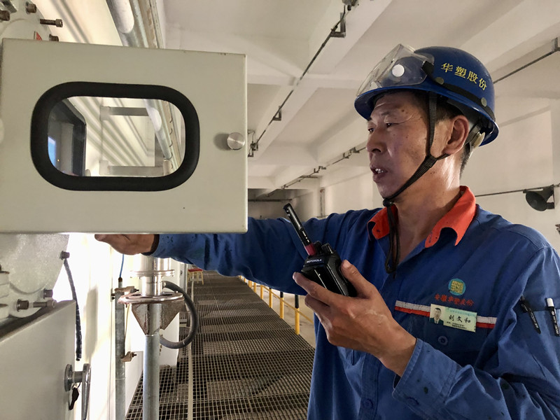 “劉師傅給我最大的印象就是對待工作的認(rèn)真勁,他每天都是把工作做細(xì)、做完整才下班。2012年到現(xiàn)在,十年如一日!”華塑股份能工巧匠趙聯(lián)波和筆者說。走進(jìn)燒堿車間合成工序,劉文和正在巡檢,一手拎著扳手,確認(rèn)每道卡口和螺栓;一手握著報警儀,保持警惕,發(fā)現(xiàn)異常立即采取措施。“華塑對設(shè)備安全管理的嚴(yán)和規(guī)范,總會讓我有種重回軍營的熟悉感,在這樣的企業(yè)工作很有安全感。”部隊的專業(yè)訓(xùn)練造就了他工作的執(zhí)著和嚴(yán)謹(jǐn),無論是日常巡檢,還是停車后的設(shè)備檢修、開車前的排查管線、或是是后期設(shè)備的改造,只要是他負(fù)責(zé)的項目,他總會把工作當(dāng)作初次接手一樣去干,監(jiān)督、檢查、驗證……確保系統(tǒng)運行安全穩(wěn)定。