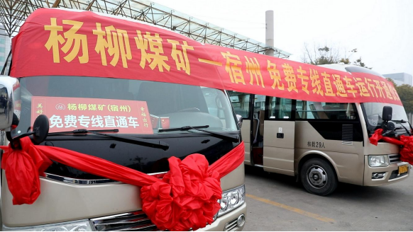 (2022年1月10日,楊柳礦開(kāi)往宿州市的免費(fèi)通勤車(chē)正式開(kāi)通。)