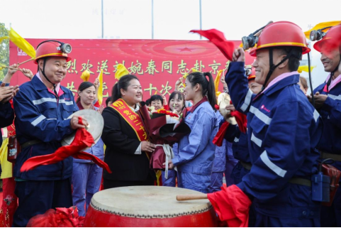 (2022年10月7日,淮北礦業(yè)集團(tuán)在桃園礦舉行儀式,歡送黨的二十大代表、桃園礦保運(yùn)區(qū)職工劉婉春赴北京參加中國(guó)共產(chǎn)黨第二十次全國(guó)代表大會(huì)。)
