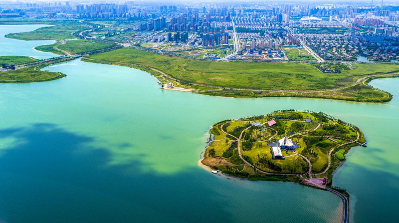 接上父母后,一家人驅(qū)車來(lái)到位于淮北市主城區(qū)旁的綠金中央公園,這座占地近4萬(wàn)畝的濕地,像一幅巨大的畫作在王力眼前鋪開,湖水碧波蕩漾,植被枝繁葉茂,天地間一片綠意盎然。