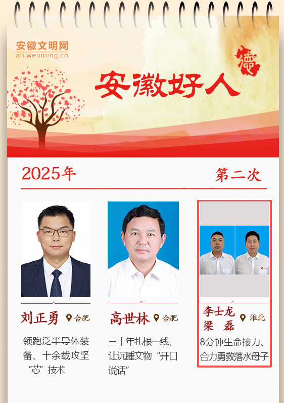 1月4日,安徽省委宣傳部發(fā)布了2025年第二次“安徽好人”榜單,青東礦職工李士龍、梁磊榮登榜單,獲評見義勇為類“安徽好人”稱號。