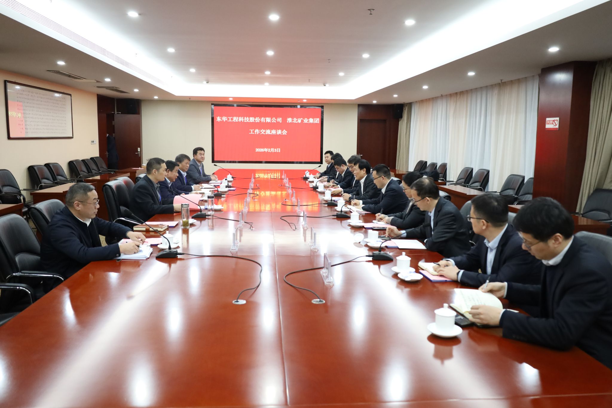 2月3日,淮北礦業集團與東華工程科技公司舉行工作交流座談會?;幢钡V業集團黨委書記、董事長、總經理孫方,淮北礦業財務總監殷召峰;東華工程科技公司黨委書記、董事長李立新,黨委副書記、總經理孟陳周,黨委委員、副總經理葉平,以及雙方相關部門負責人參加座談。